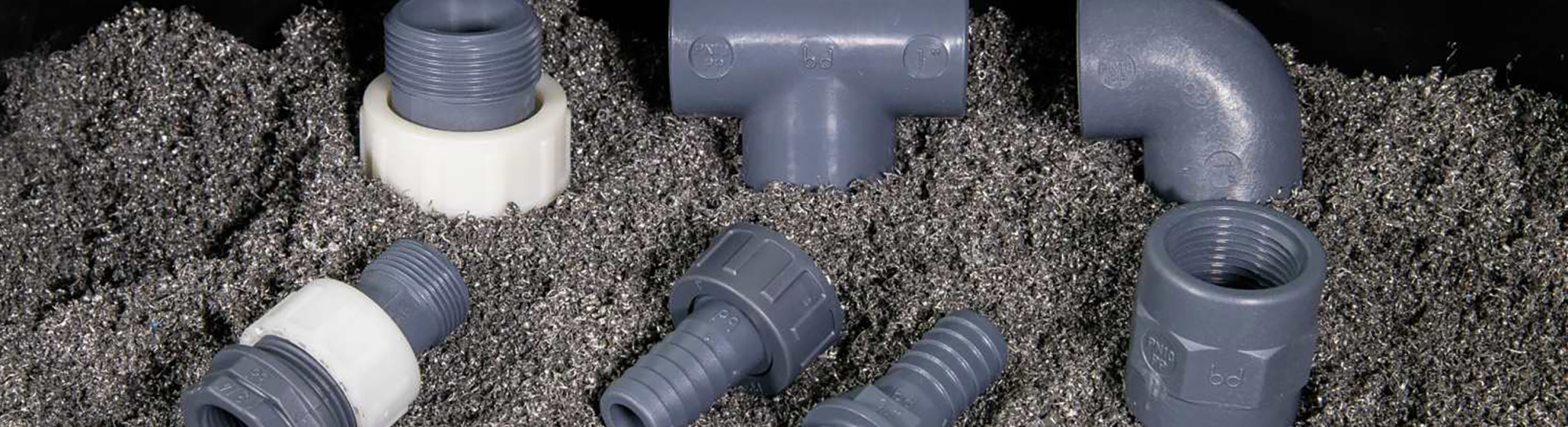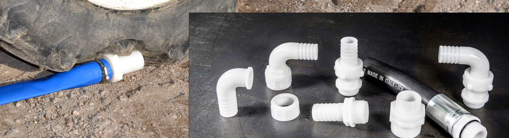 Raccordi in polipropilene filettati e portagomma per industria